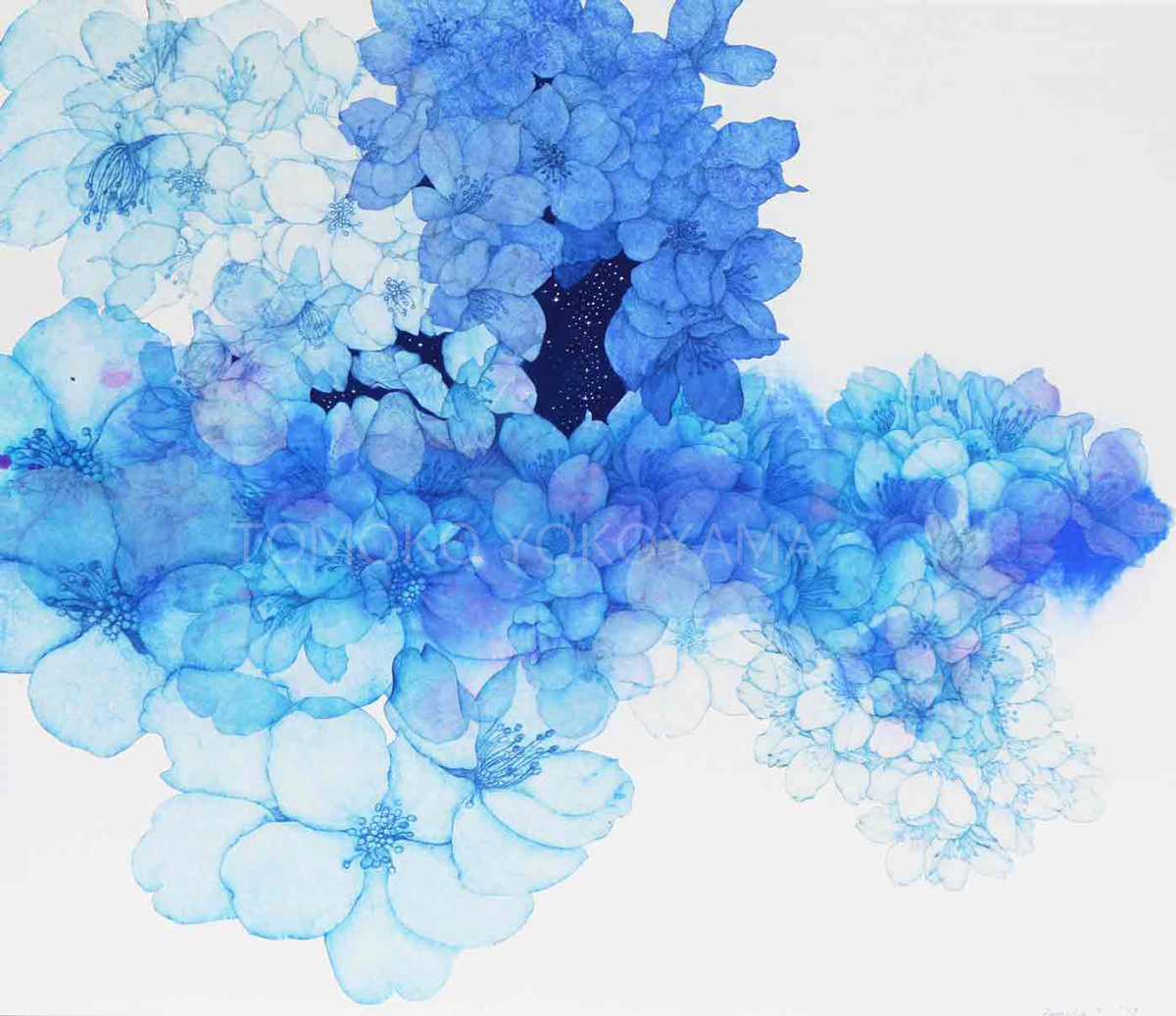The depths of the sky-blue cherry blossoms