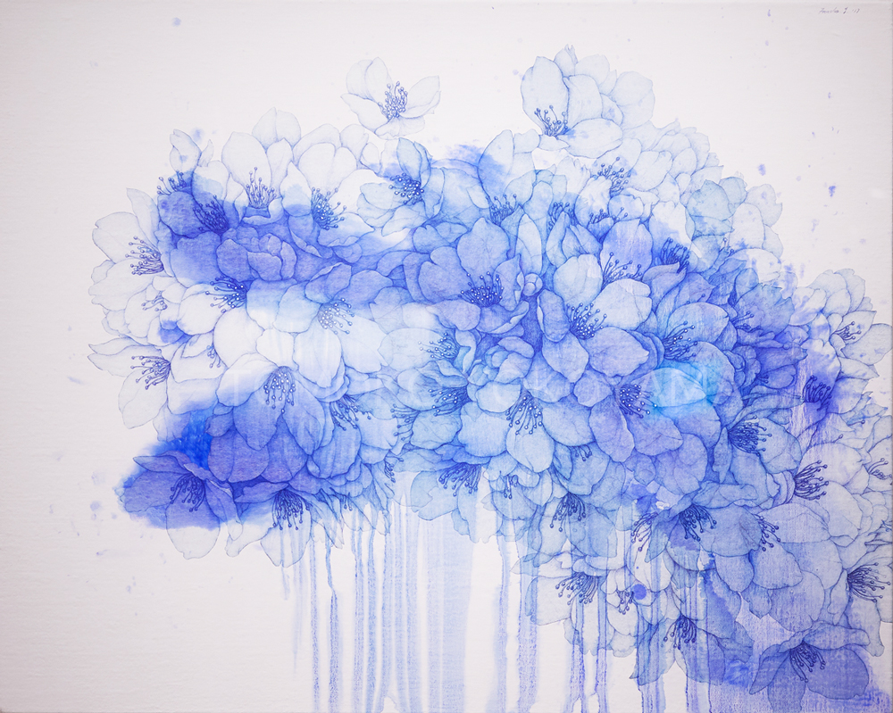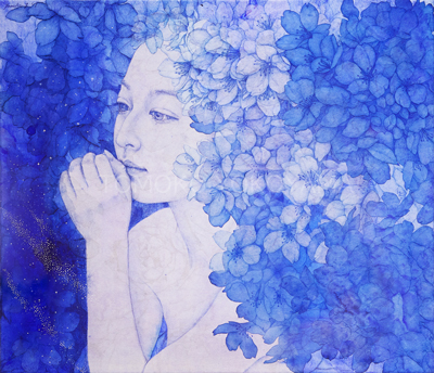The depths of the sky-blue cherry blossoms